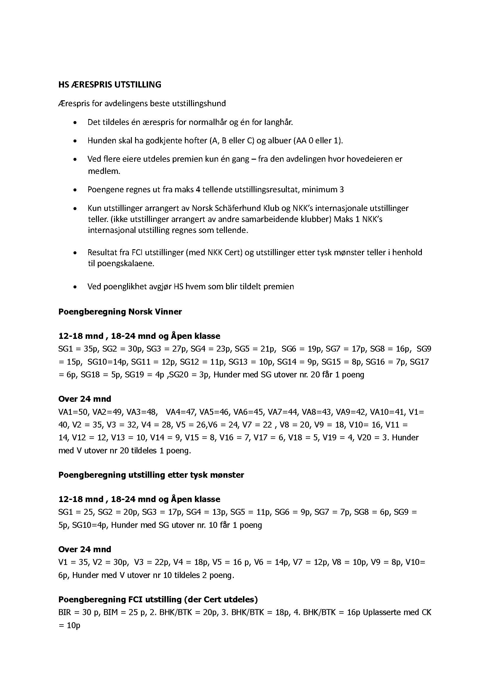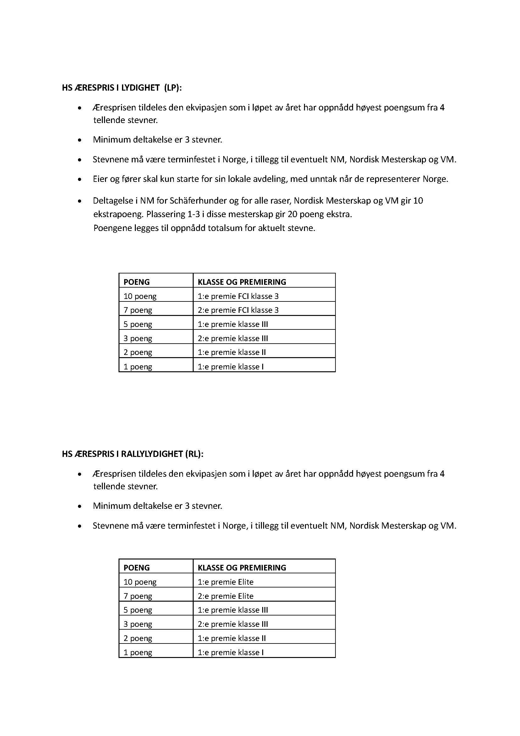 Poengfordelingen til æresprisen for sporhunder. Trykk HER