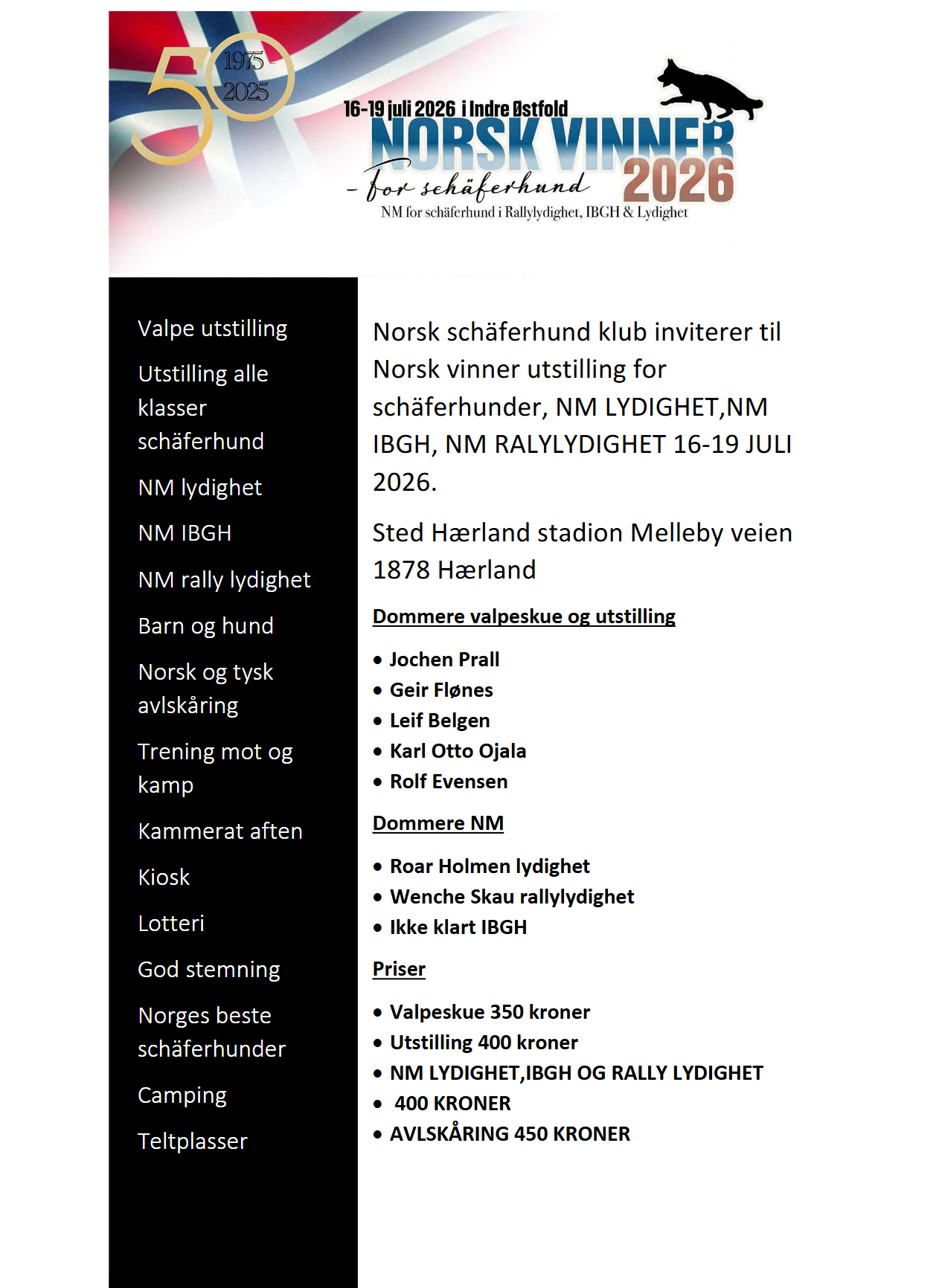 Vi ønsker alle Norske og gjester fra utenlandske velkommen til Norsk vinner utstilling 16-19 juli.